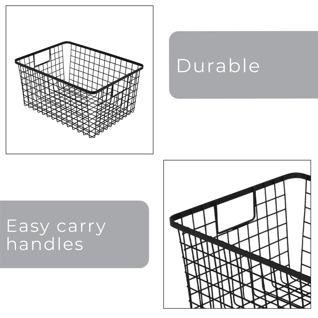 Smart Design Sturdy Steel Wire Nestable Basket Organizer – 9 x 6 x 12 inch – Set of 2 -Black