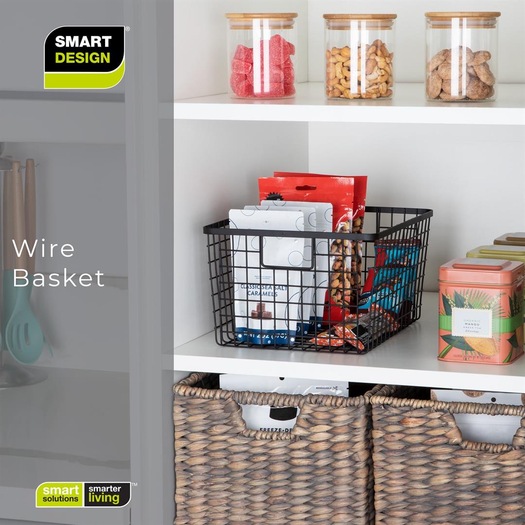 NESTABLE BASKETS – Perfect fit design for organizing your pantry, kitchen, and home FEATURES – Space-saving baskets nest within each other and are made of sturdy steel wire with rust-proof technology SMART DESIGN QUALITY – All Smart Design products undergo stringent quality assurance & control 24/7 USA SUPPORT – Contact us online or phone for product questions, concerns, and warranty info DIMENSIONS: 9 x 12 x 6 inches (L x W x H) Sold in a set of 2