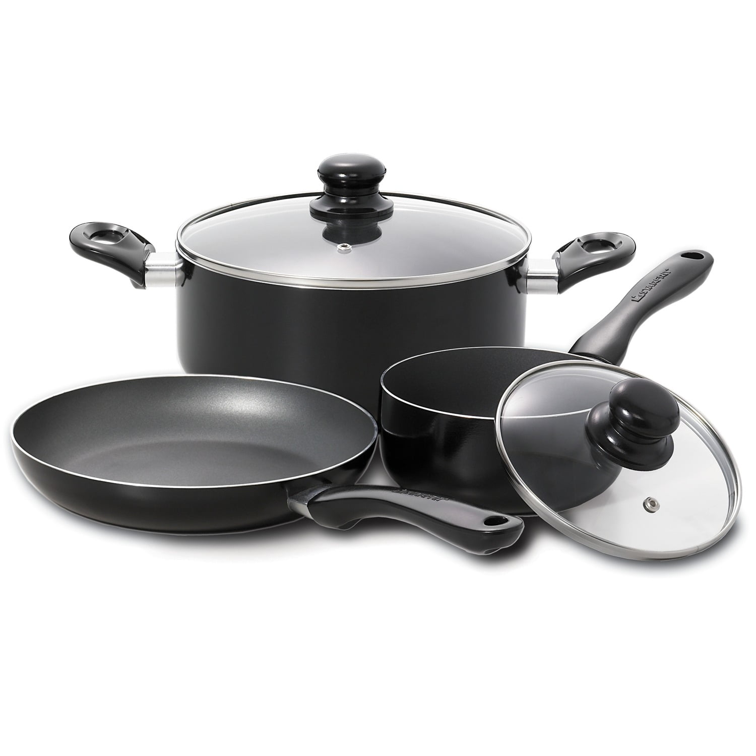 Aluminum material for exceptional quality and easy cleaning With this cookware, experience a lifetime of cooking enjoyment Ideal for practical and functional cooking 5-Piece cookware set. Set includes: one 1. 5 qt saucepan with lid one 4. 8 qt sauce pot with lid one 9. 5″ frying pan. Hand washing is strongly recommended. If placed in the dishwasher, the exterior may become dull and discoloured due to the action of certain detergents.