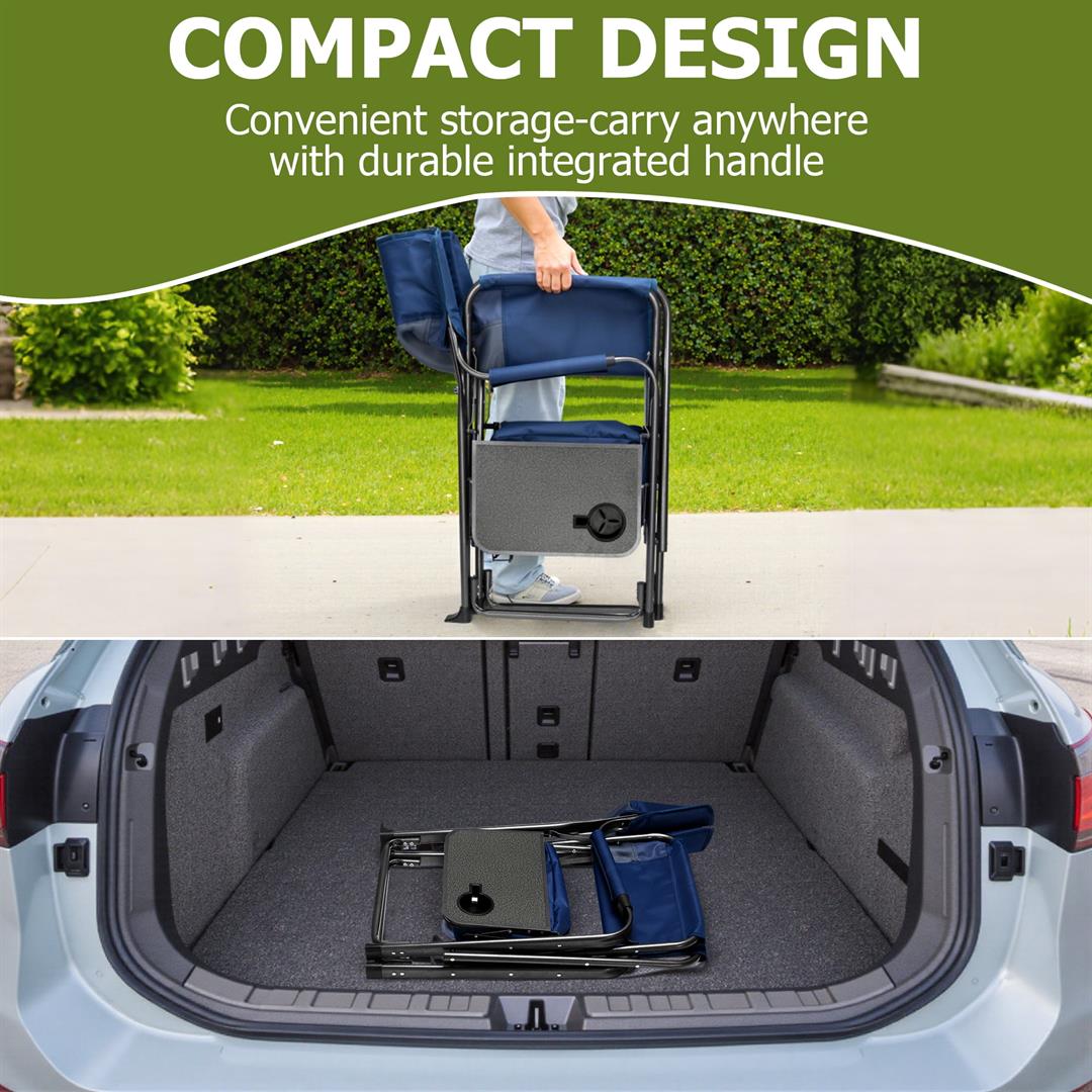SUGIFT 300lbs Folding Camping Chairs with Cooler Bag, Lawn Chairs with Side Table for Outdoor, Lawn, Sports, Fishing, Blue