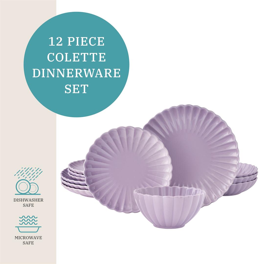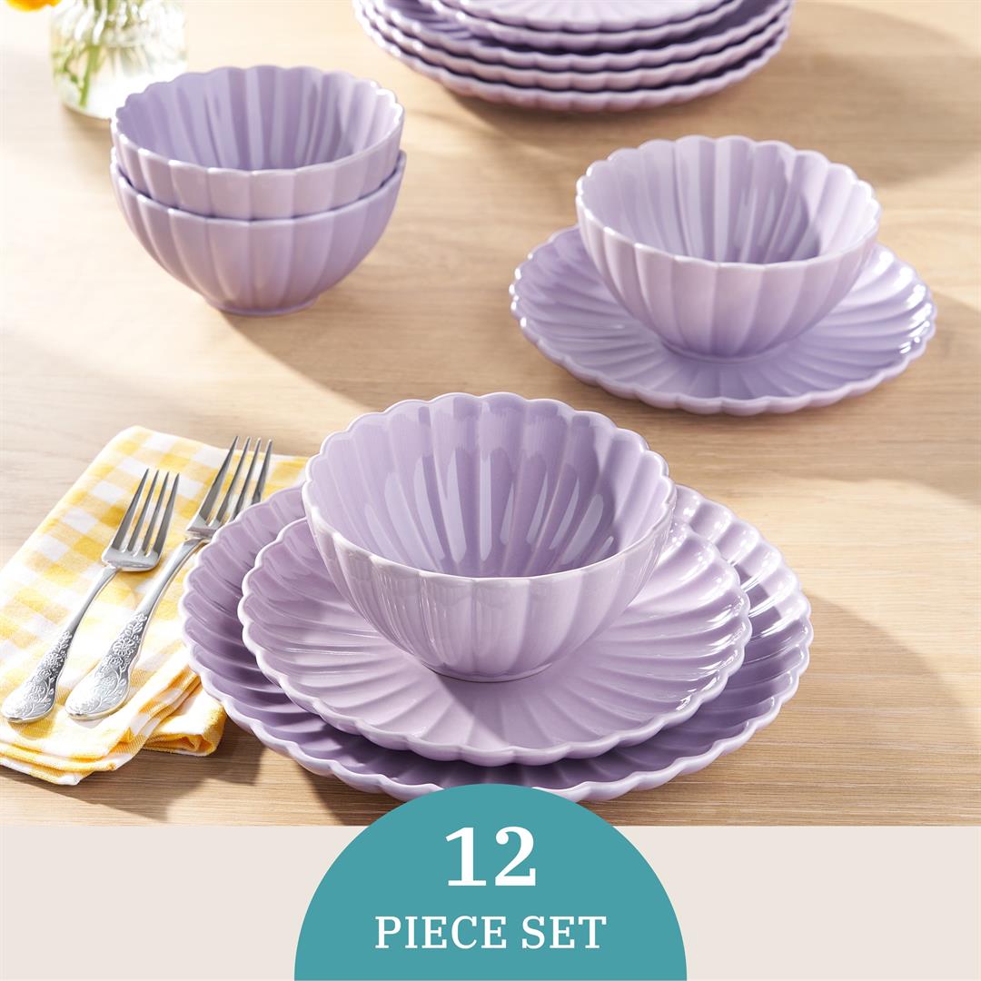 The Pioneer Woman Colette 12-Piece Stoneware Dinnerware Set, Purple