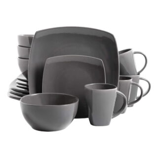 The Pioneer Woman Gingham 12-Piece Ceramic Dinnerware Set, Gray