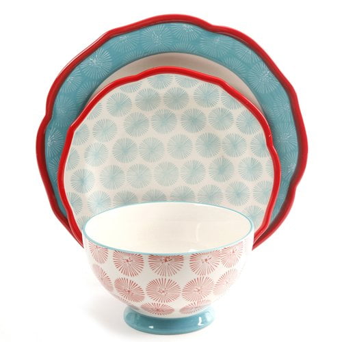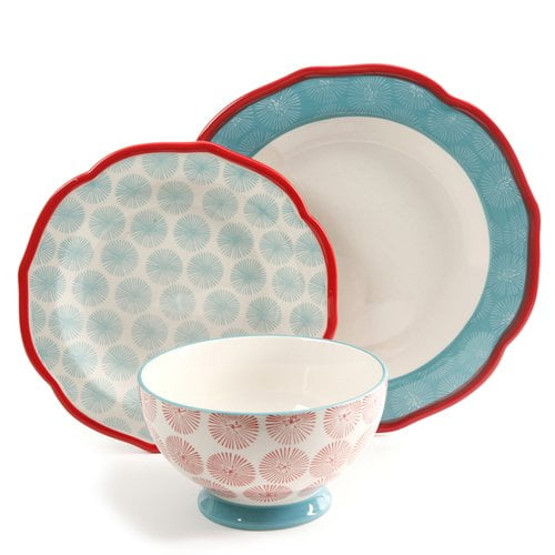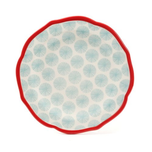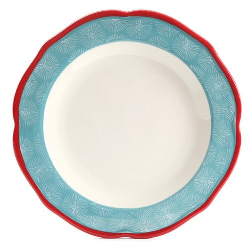 Complete service for four Includes the following: Four 10.6″ dinner plates, four 8.8″ dessert plates, and four 6.25″ bowls Featuring durable stoneware construction, a festive teal design, and beautifully scalloped red edges Dishwasher & microwave safe From Ree’s frontier to yours Great as a gift or a collectible item Mix & match with other items in The Pioneer Woman Collection