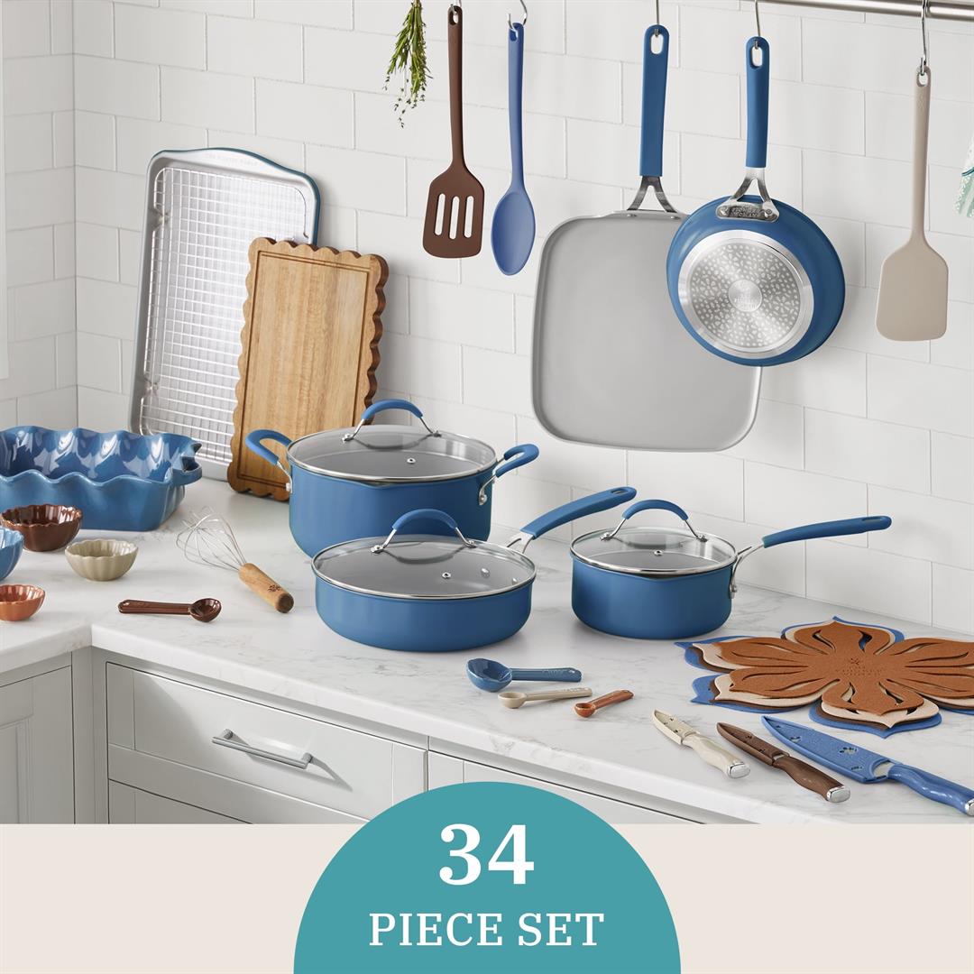 The Pioneer Woman Sutton 34-Piece Ceramic Nonstick Cookware and Bakeware Set, Blue