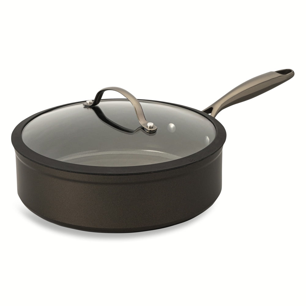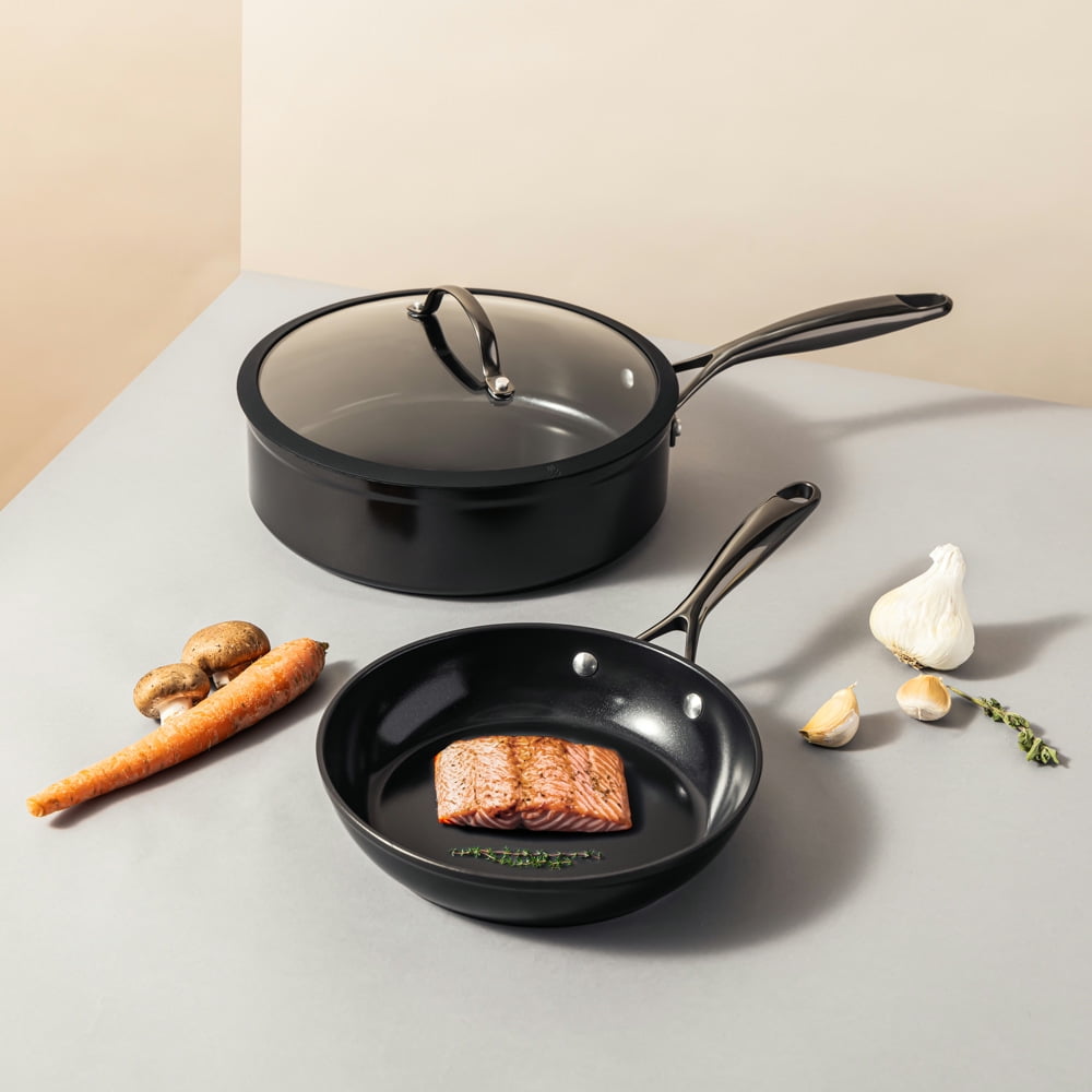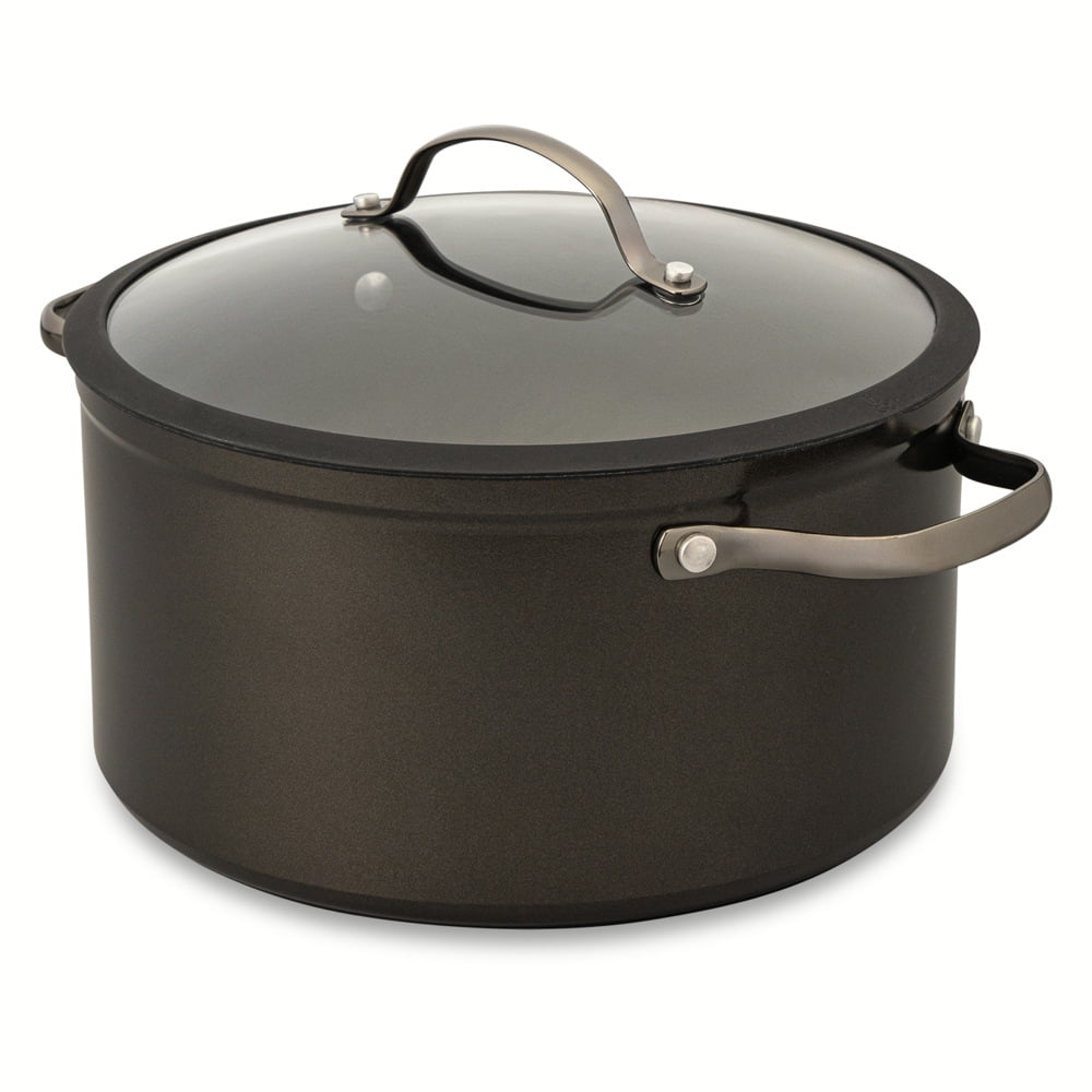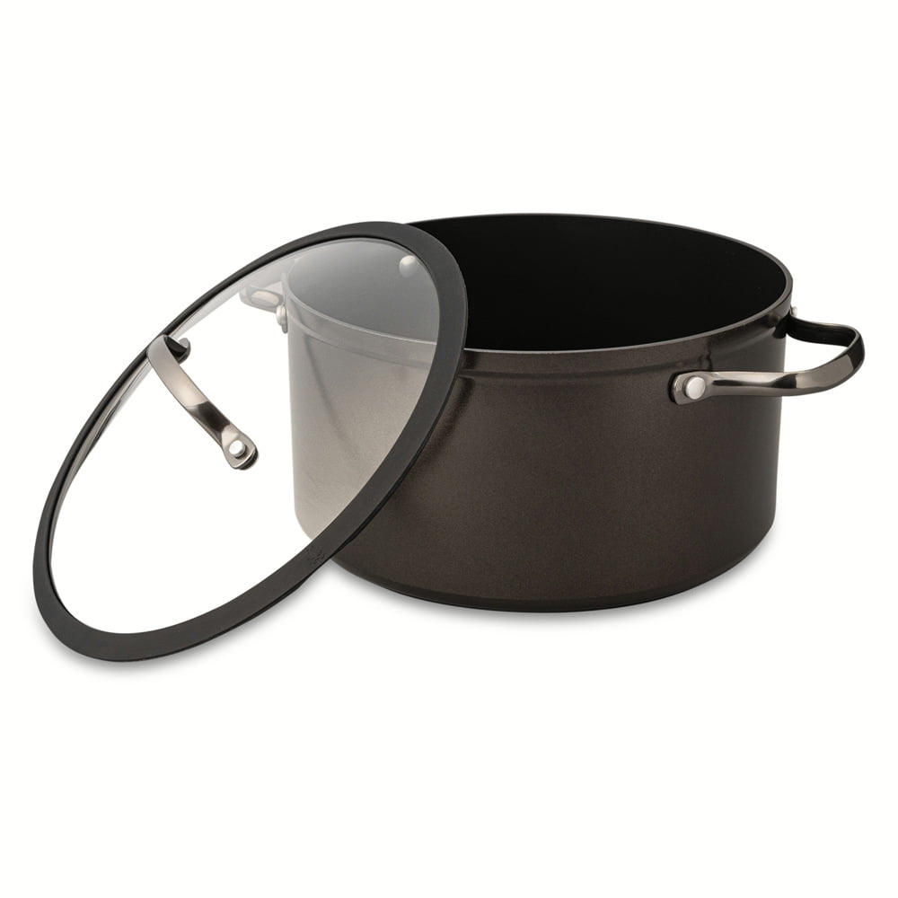 Meet your new Signature kitchen tool, Thyme & Table 12-Piece Ceramic Non-Stick Signature Cookware Set, elegantly designed in black with gunmetal handles. This set is the perfect blend of style and functionality, ensuring a top-notch cooking experience with every use. This set includes a generous 6-quart stock pot, a 2.5-quart saucepan, a 2-quart saut pan, a 10-inch fry pan, and an 8-inch fry pan, equipping you for any culinary challenge. Additionally, it comes with 4 cookware protectors to keep your investment in pristine condition for years to come. Ultimate Engineering: Each piece is crafted to perfection using heavy gauged aluminum, ensuring exceptional results with every dish. Because of its stainless-steel induction base our cookware is engineered for all cooktops, including gas, electric or induction, and oven safe up to 400 Fahrenheit. Healthier Cooking and Non-Stick: The ultimate feature is its non-stick coating, allowing for quick cleanup, and helps to promote healthier cooking with effortless cleanup. Optimal Handling: Designed for ease and precision, our cookware features ergonomic riveted handles that provide superior grip and balance, ensuring safe and effortless maneuvering in the kitchen. Revolutionize your Kitchen: Capable of handling everything from frying and searing to simmering, braising, and boiling, this comprehensive set is designed to revolutionize your cooking experience. Offering versatility and durability in one stylish package, it elevates your kitchen setup. Enhance your culinary creativity with confidence using the Thyme & Table 12-Piece Ceramic Non-Stick Signature Cookware Set, Black and Gunmetal. Use and Care Dishwasher Safe, Handwash Recommended