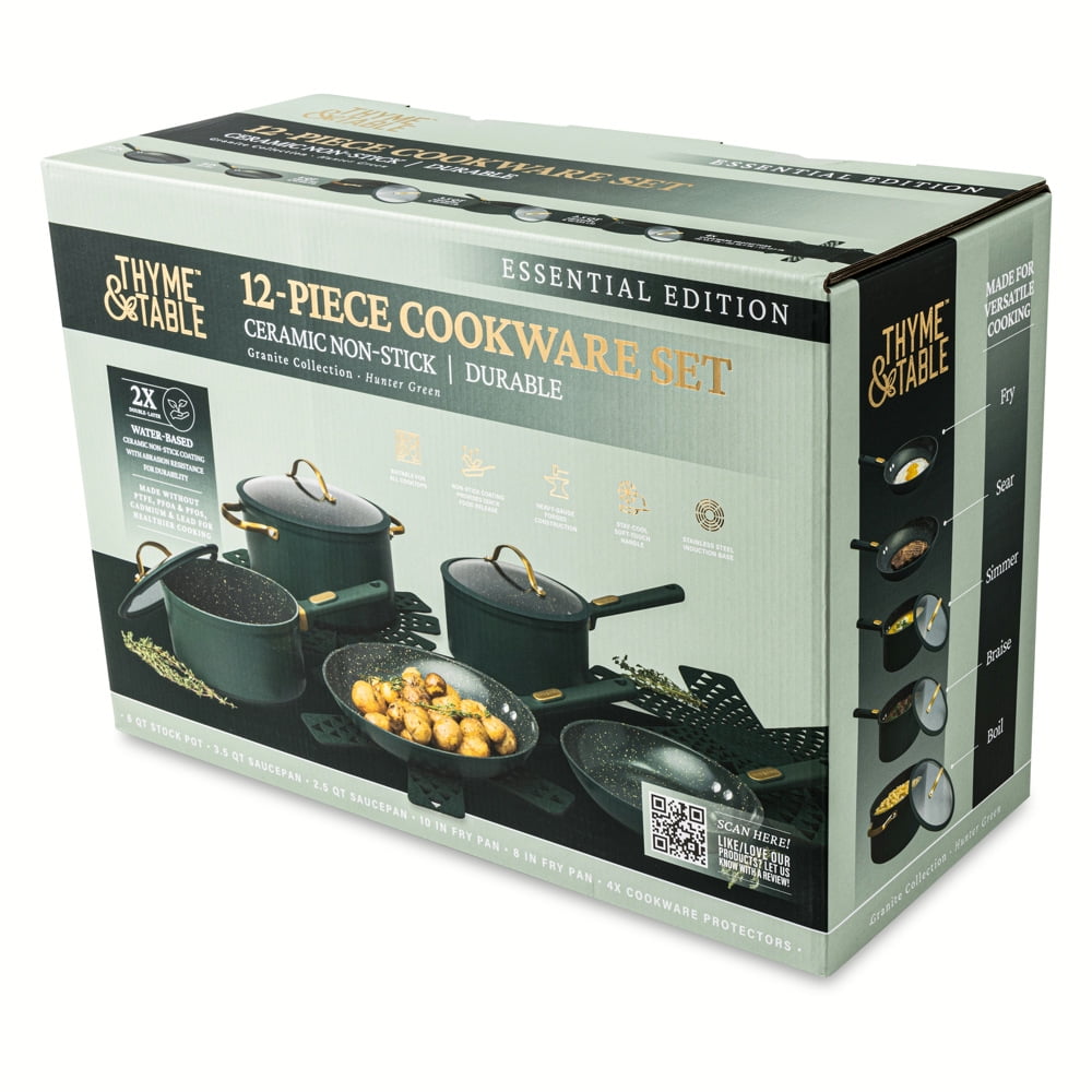 Thyme & Table 12-Piece Non-Stick Granite Collection Cookware Set, Pots and Pans Set – Hunter Green