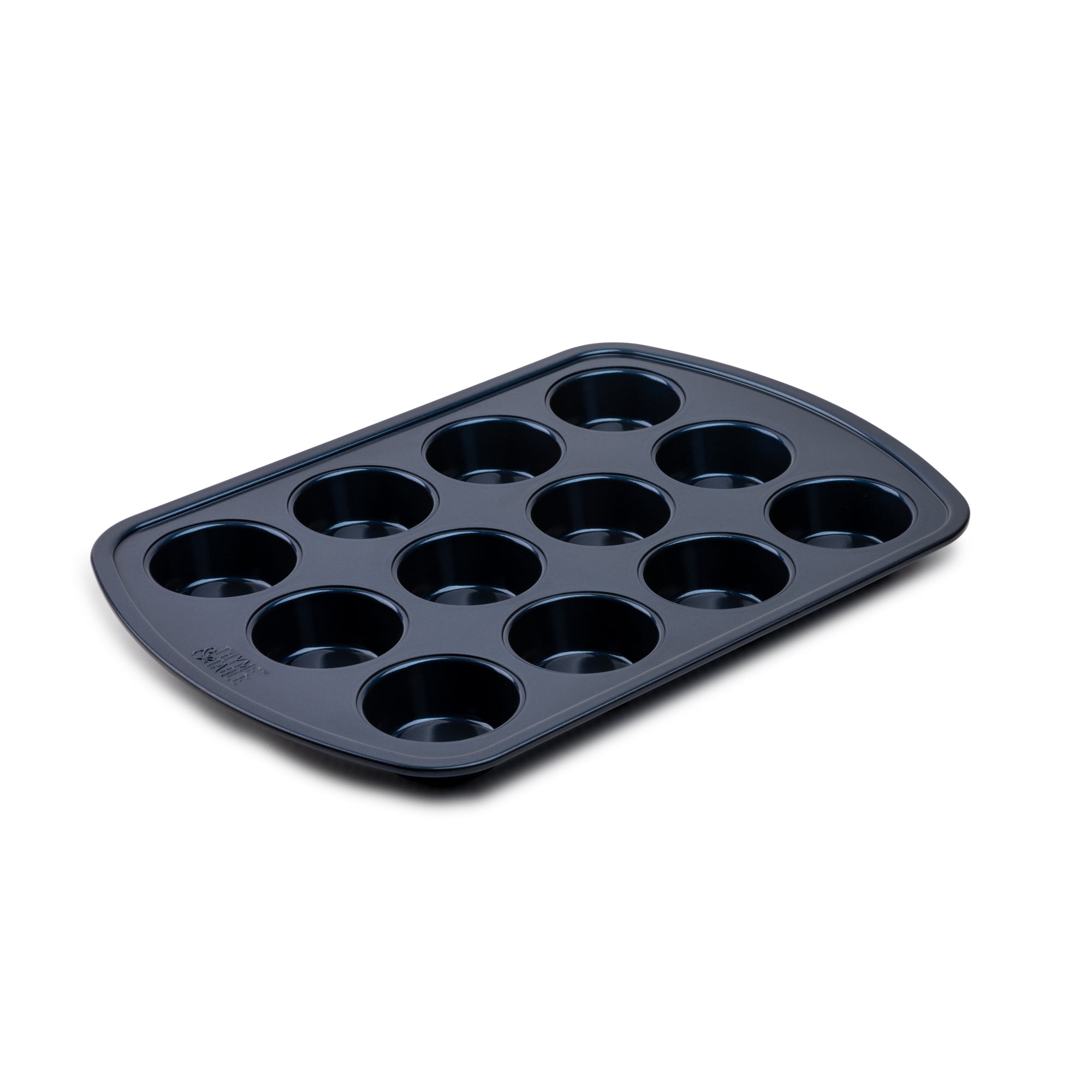Thyme & Table Non-Stick Aluminized Steel Baking 6pc Set, Navy is your kitchen’s new best friend for all your baking adventures! Discover the perfect blend of style and functionality with this versatile bakeware collection. Crafted with precision and built to last, each piece is designed to elevate your baking experience. Whether you’re a seasoned pro or just getting started, this set has everything you need to create delectable treats that will impress family and friends. This set includes: muffin pan, baking sheet, loaf pan, rectangular baking pan, round cake pan, and square baking pan. For product’s longevity, please hand wash.