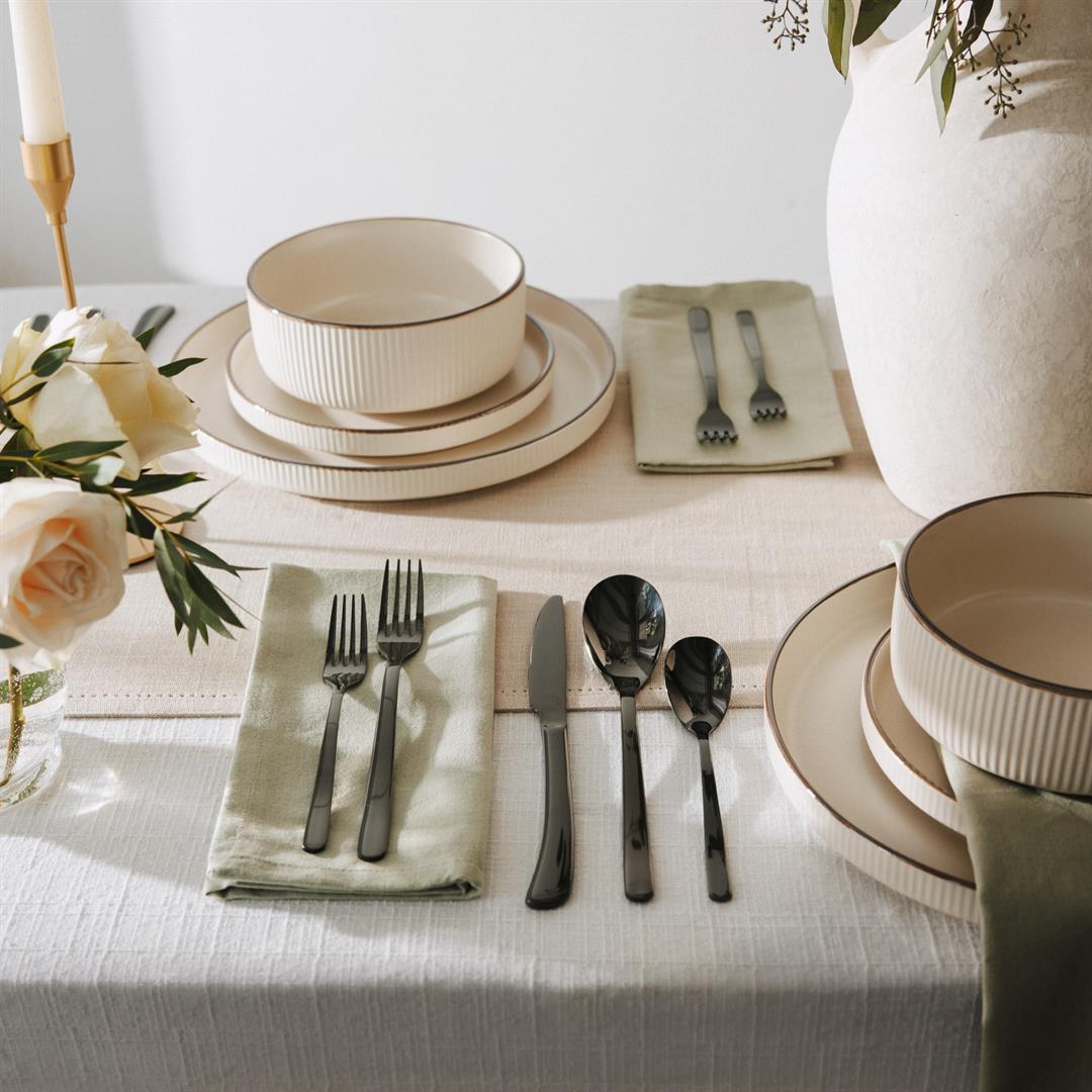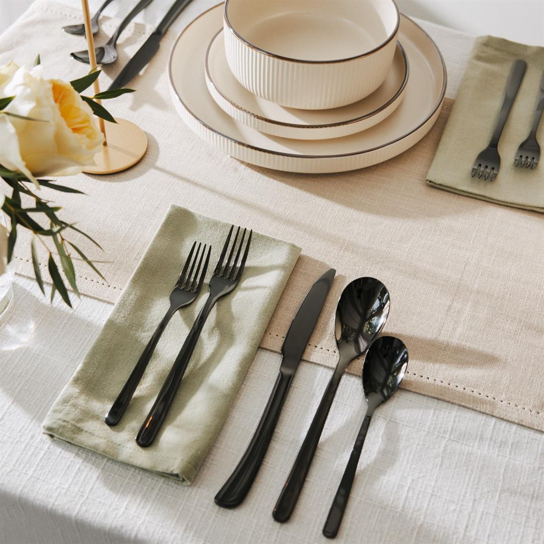 Thyme & Table Royal 40-Piece Black Stainless Steel Flatware Set Complete 40-Piece Set for 8: Includes 8 dinner forks, 8 salad forks, 8 dinner knives, 8 dinner spoons, and 8 teaspoonsideal for larger gatherings or families. Premium Stainless-Steel Construction: Crafted from high-quality stainless steel for durability and resistance to rust and corrosion. Dishwasher Safe: Designed for easy cleaning and durability, making mealtime cleanup effortless.