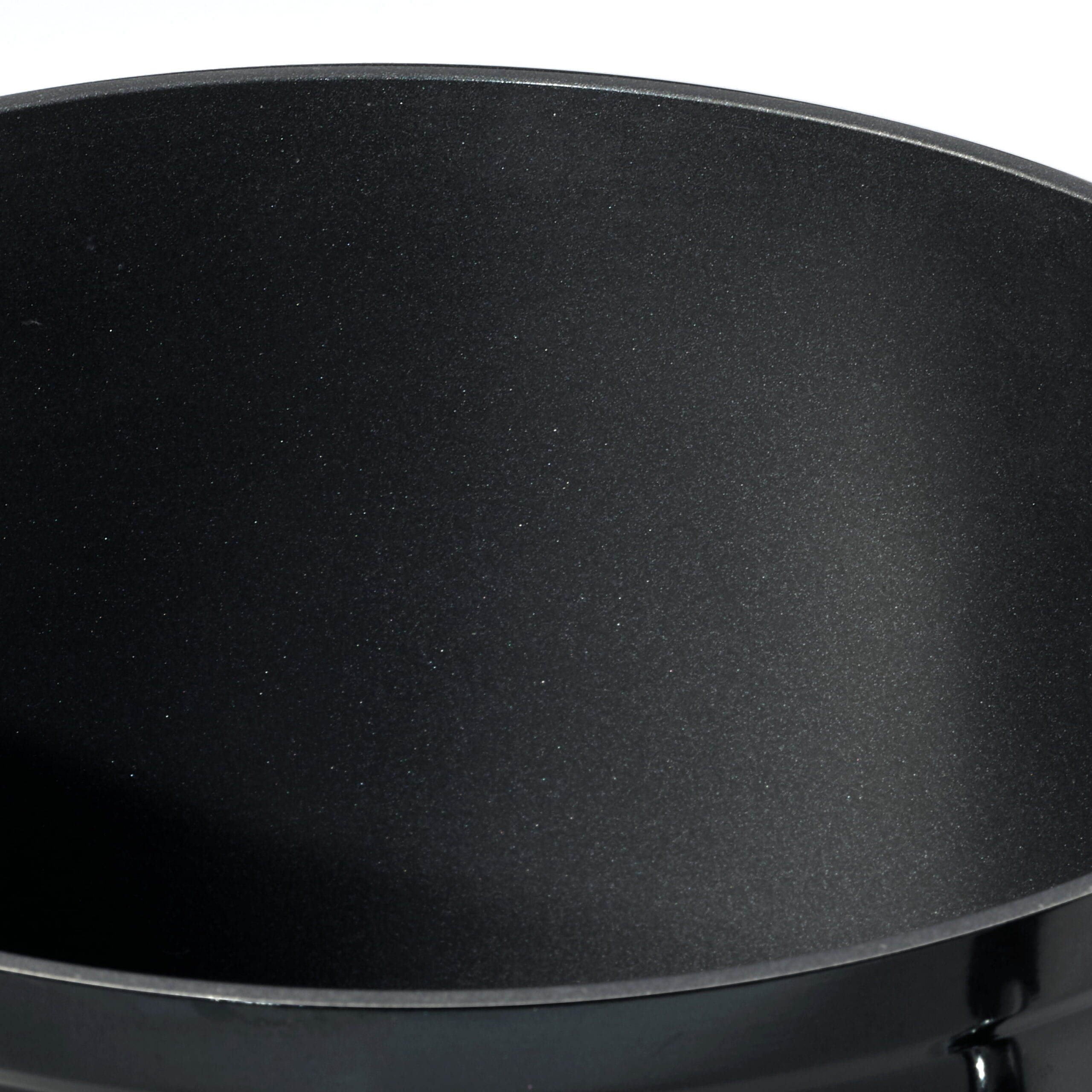 Nonstick Interior for effortless cooking and cleanup Durable Porcelain Enamel Exterior Heavy-Gauge Aluminum provides even heat distribution Tempered Glass Lid Stainless Steel Handles with Soft-Grip Silicone Accents Compatible with gas, electric and ceramic glass cooktops Oven-safe up to 350 F / 176 C Dishwasher-Safe Lifetime Warranty