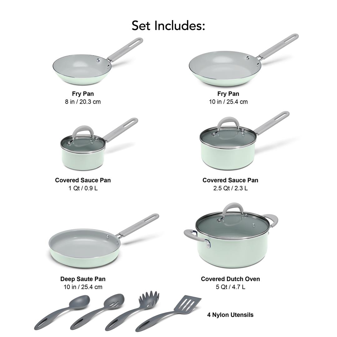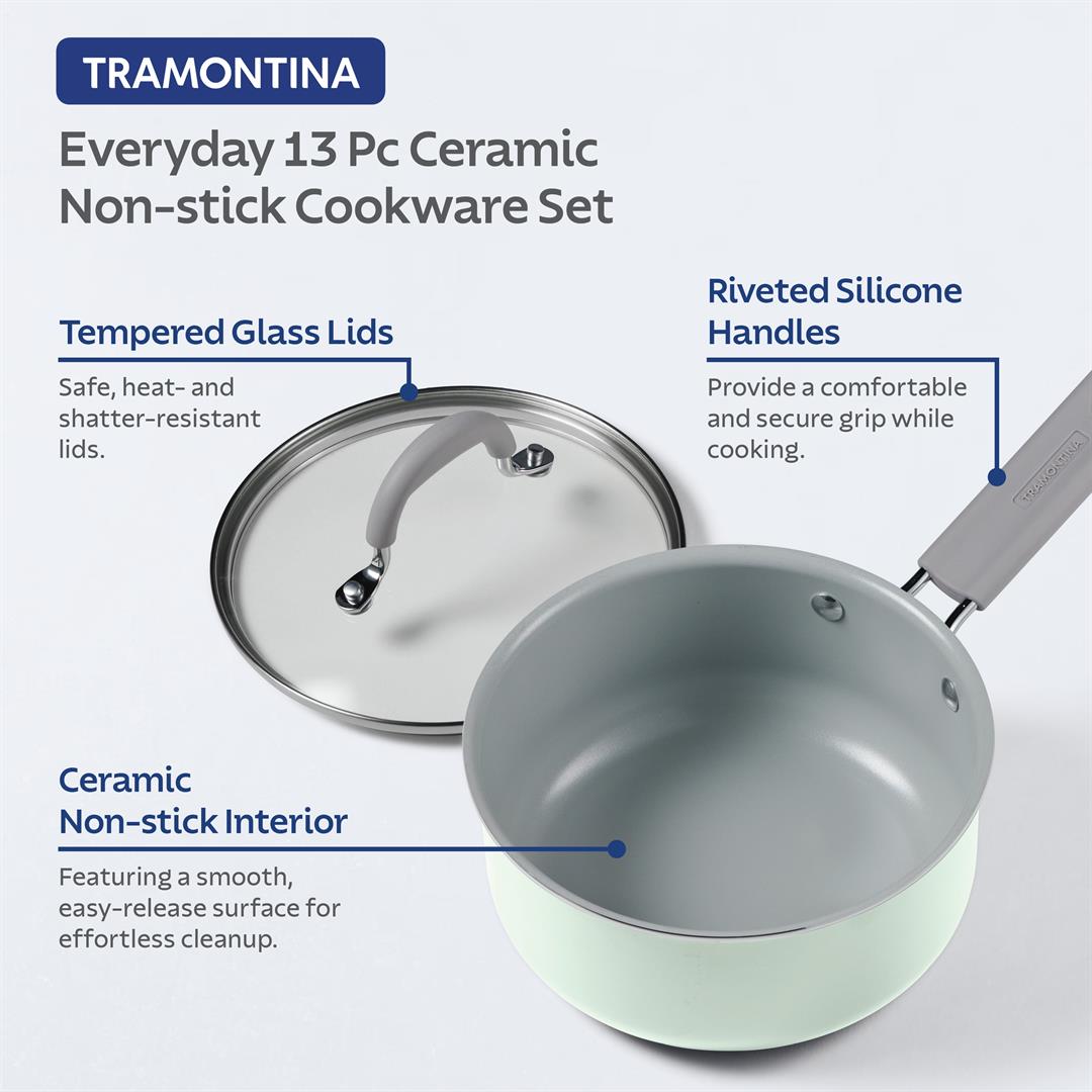 Tramontina 13-Piece Ceramic Cookware Set, Everyday Collection – Mint