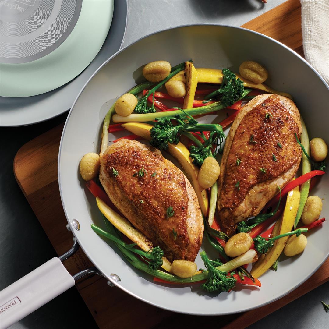 The Tramontina 13-Piece Everyday Ceramic Nonstick Cookware Set has everything you need for effortless everyday cooking. With durable aluminum construction, these pots and pans heat up quickly and cook food evenly. The ceramic nonstick interior ensures easy food release and quick cleanup. This versatile set includes all the essentialsfrom fry pans and saucepans to a deep saut pan and Dutch ovenplus a set of matching nylon utensils to make cooking even easier. Designed for convenience, the lids are interchangeable, and the cookware is oven-safe up to 350F. Whether youre making a simple breakfast or a family dinner, this set has you covered.Upgrade your kitchen with the Tramontina 13-Piece Everyday Cookware Setperfect for making delicious meals, morning to night!