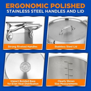 Tramontina’s Porcelain Enamel Aluminum 8 Quart Nonstick Covered Stock Pot is ideal for cooking pasta, preparing soup, boiling veggies or simmering chili. Cooks will be pleased by its heavy-gauge aluminum construction, quick heat distribution, and durable porcelain enamel exterior that is resistant to chips and scratches. Its high-performance Teflon nonstick interior provides effortless cooking and easy cleanup. The heat- and shatter-resistant tempered glass lid allows you to monitor your cooking progress, while the ergonomically designed handles provide added support when handling a filled pot. This dishwasher-safe cookware is compatible with gas, electric and ceramic glass cooktops, is oven-safe up to 350 F / 176 C, and offered under a Lifetime Warranty. ? Nonstick Interior for effortless cooking and cleanup ? Durable Porcelain Enamel Exterior ? Heavy-Gauge Aluminum provides even heat distribution ? Tempered Glass Lid ? Stainless Steel Handles with Soft-Grip Silicone Accents ? Compatible with gas, electric and ceramic glass cooktops ? Oven-safe up to 350 F / 176 C ? Dishwasher-Safe ? Lifetime Warranty