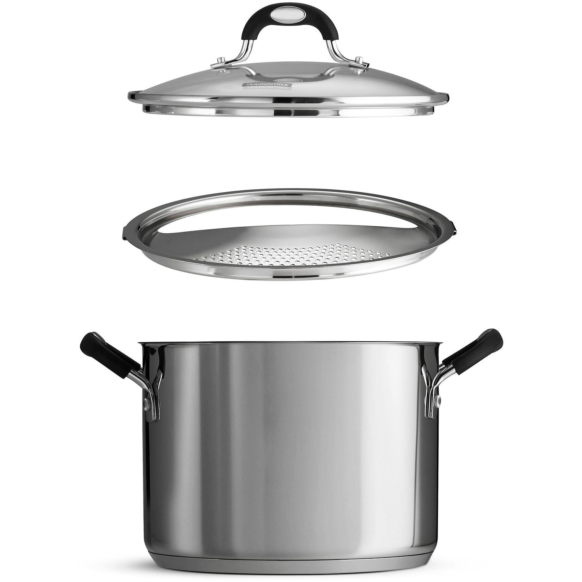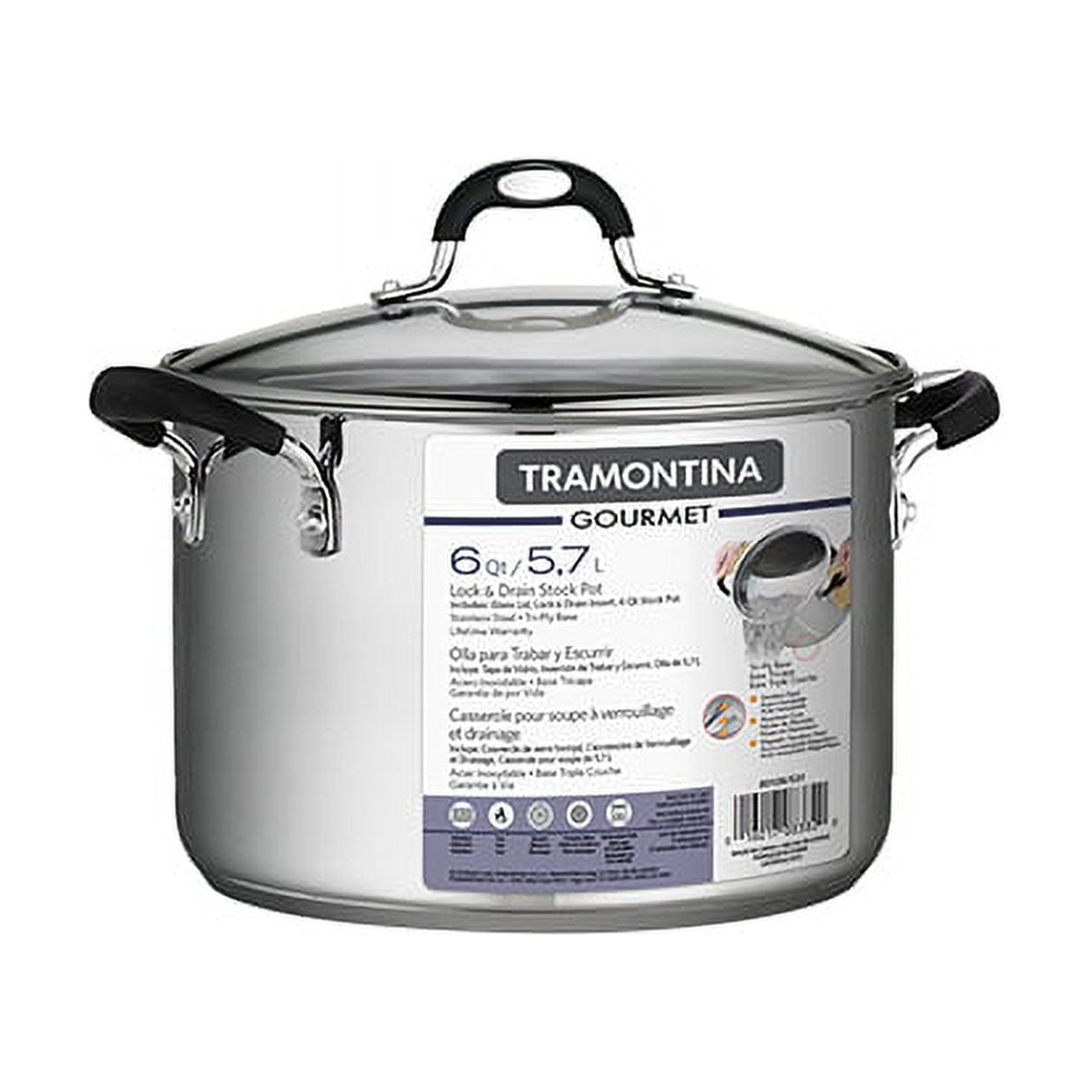 Tramontina Lock-N-Drain Stainless Steel 6 Quart Covered Stock Pot, 3 Count