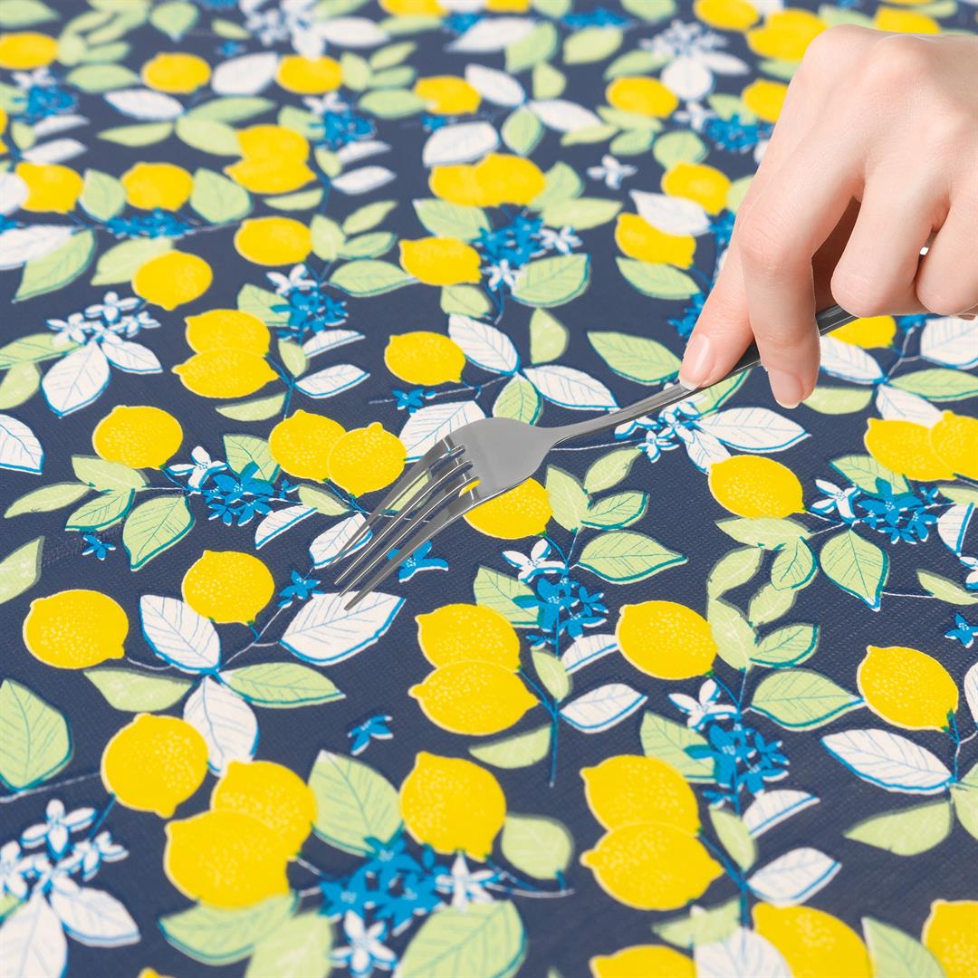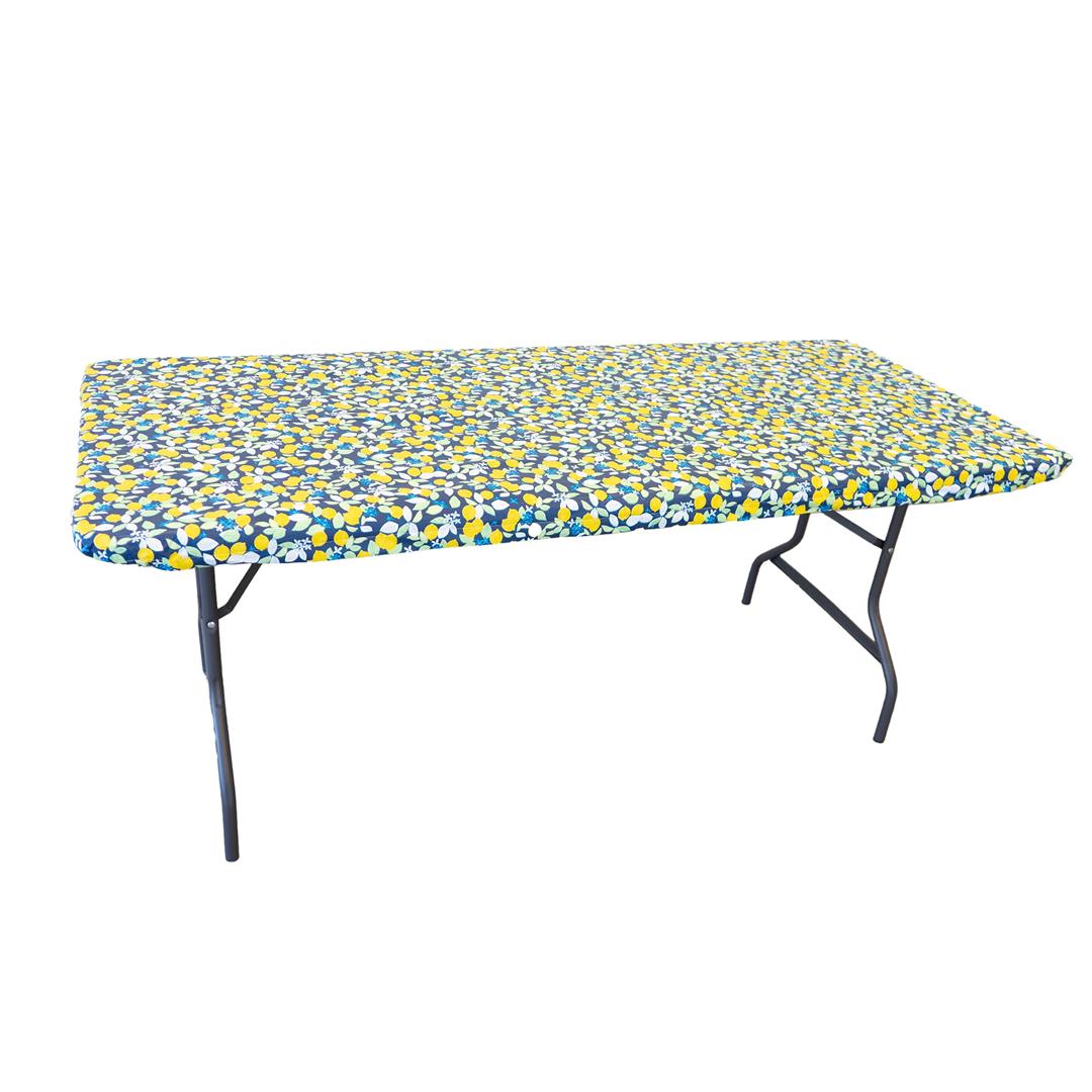 Waverly Inspirations Elastic Fitted Vinyl Table Cover With Flannel Backing, 6Ft Table, 72″ x 30″, Lemon Tree, 8 PK