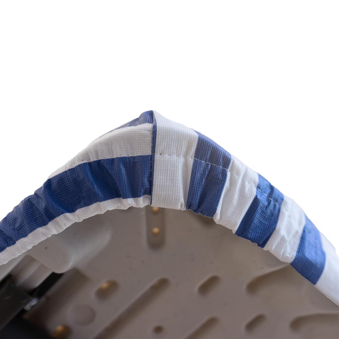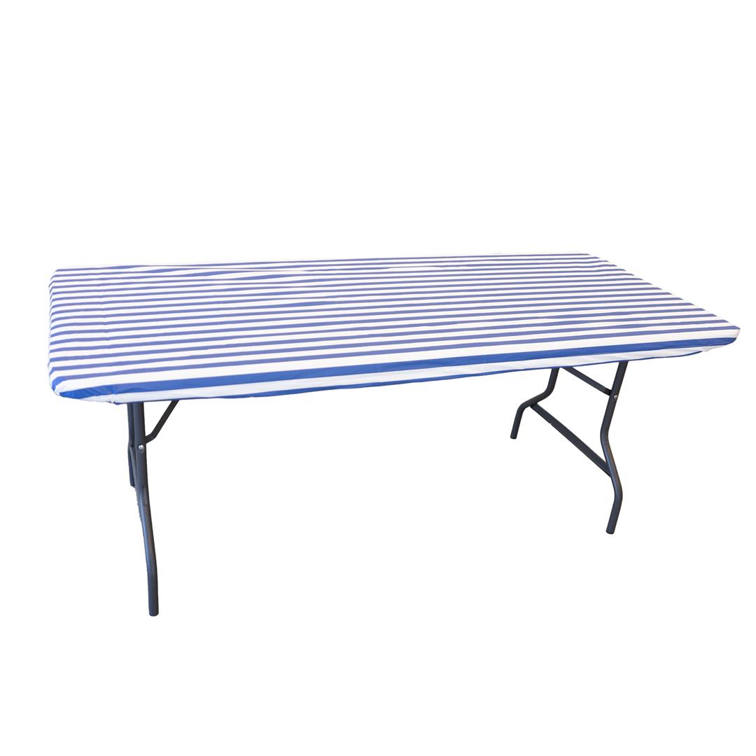Waverly Inspirations Rectangular Elastic Fitted Table Cover Waterproof Vinyl Tablecloth With Flannel Backing, 6Ft Table, 72″ x 30″, White/Blue Stripe, 8 PK