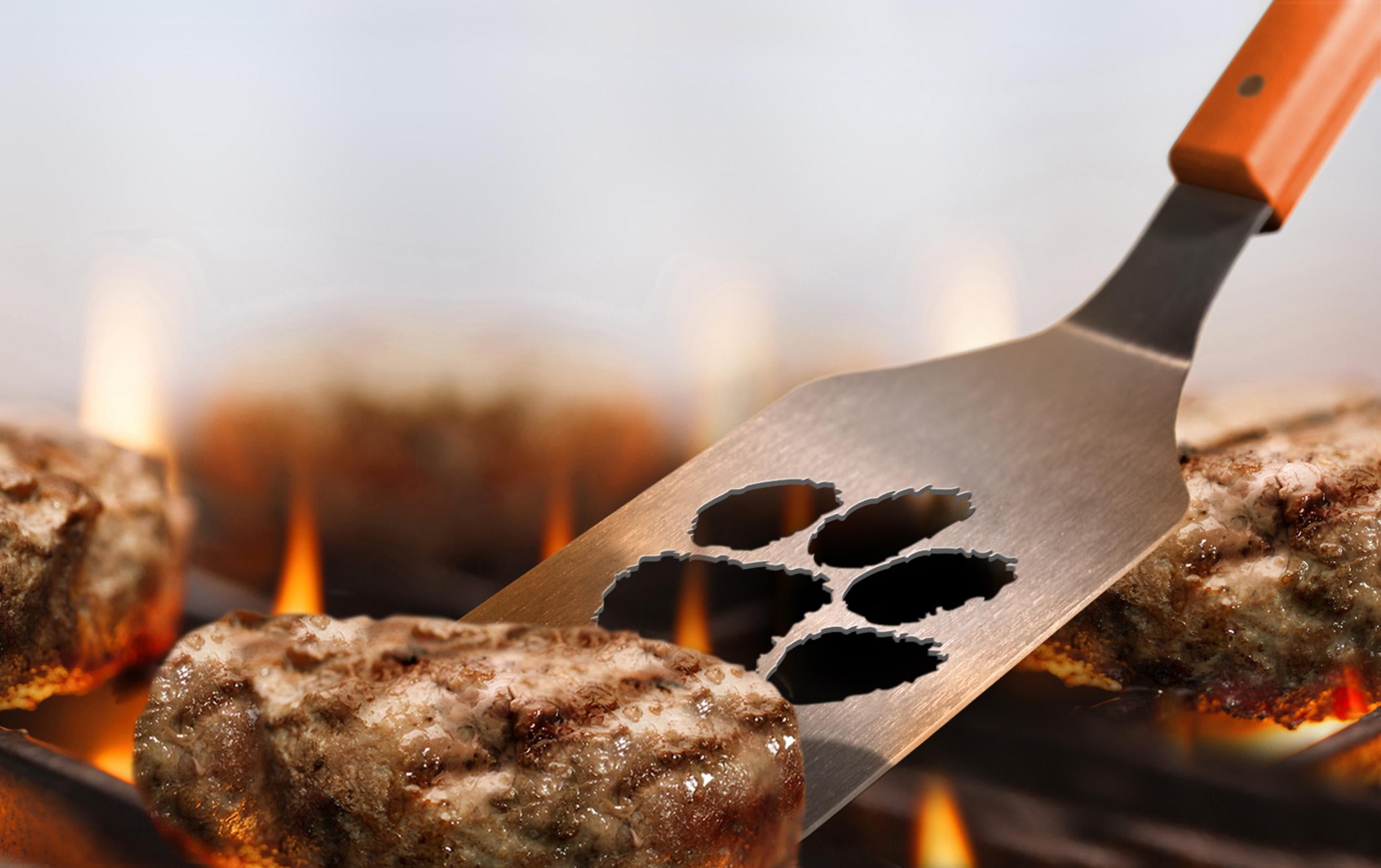 Get your grill game on with an officially licensed set of barbecue tools. The barbecue tool set includes a Sportula, a pair of tongs and a grill fork. Each tool is made from heavy-duty stainless steel with brass-riveted team colored composite handles. Your team’s logo is stamped on the team colored composite handles and the team logo is laser cut through the blade of the Sportula. The Sportula and the fork both come with an integrated bottle opener. An unforgettable gift for any fan and the most noticed accessory at any tailgating event.