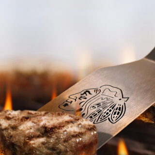 Get your grill game on with an officially licensed set of barbecue tools. The barbecue tool set includes a Sportula, a pair of tongs and a grill fork. Each tool is made from heavy-duty stainless steel with brass-riveted team colored composite handles. Your team’s logo is stamped on the team colored composite handles and the team logo is laser cut through the blade of the Sportula. The Sportula and the fork both come with an integrated bottle opener. An unforgettable gift for any fan and the most noticed accessory at any tailgating event.