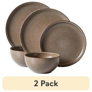 (2 pack) Better Homes and Gardens Banks Brown 12-Piece Stoneware Dinnerware Set