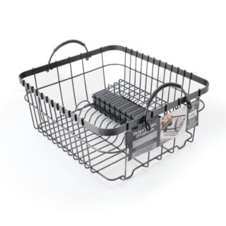 • Quickly and easily dry a variety of dishware, glassware, flatware, cookware, and more with this Better Homes & Gardens Antique Gray Dish Rack with a Caddy. This spacious dish rack can hold up to 12 plates and features an extra-wide slot that accommodates larger items like frying pans or cutting boards. The three compartment flatware caddy organizes and separates utensils, and can be placed inside or outside of the dish rack. Plus, its removable for easy unloading. Sturdy and stylish, the durable wires with an antique gray finish stand up to daily use. Hand wash recommended.