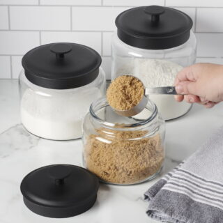 $41.99Add to cartOur Montana Jar is the ideal blend of modern aesthetics and contemporary utility in a glass jar. A black metal lid (please handwash) rests with a snug seal easily onto the dishwasher-safe glass base protecting and preserving your food and its flavors. This all-glass jar structure is entirely see-through, allowing you to showcase an array of dry goods in pantries, laundry rooms, and on counters, from flour and rice to coffee, spices, soaps, and more. It even makes the perfect candy jar and cookie jar!