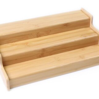 • Our Better Homes & Gardens Natural Bamboo Expandable Spice Rack can organize your cabinets or pantry, and it is designed to expand and fit your growing spice collection. This step shelf spice rack is handcrafted from fast-growing, sustainable, all-natural bamboo. The shelf nearly doubles in size when expanded from 12.91 to 22.4 inches wide. Step shelf design features three levels for easy storage and display of bottles; easily read labels at a glance. Ideal for use in your kitchen, pantry, bathroom or vanity area to organize spices, small bottles and jars, perfumes, nail polishes, lotions, or other cosmetics. Unit measures 7.67 inches deep and just over 4 inches high.