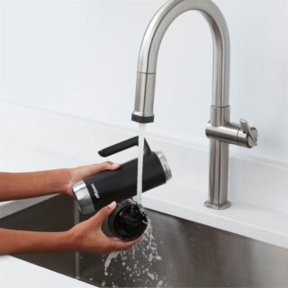 • The Stainless Steel Vacuum-Insulated Mug, 14 oz., combines the convenience of having drinks that stay hot or cold for hours with a sophisticated design in eye-catching metallic colors. Drinks stay hot for 5 hours or cold for 15 hours, perfect for sipping coffee while working from home or on a short walk around the neighborhood. The comfortable handle makes drinking your favorite beverages more enjoyable and the splash-proof lid keeps your drink inside the mug when closed. Wherever you are, the non-slip grip base helps prevent the mug from slipping, clanking, or scratching on surfaces so you feel confident setting it down. The mug conveniently fits under most single-serve brewers for filling up while multitasking. At the end of a long day, you’ll appreciate that the lid and body are top-rack dishwasher-safe for easy cleaning.