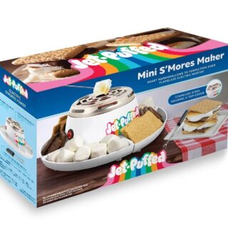 • Relive the thrill of campfire treats with our classic smore maker. Turn your family nights, sleepovers, or relaxed Sunday brunches into lasting memories with our s’mores maker. Crafted for indoor use, this portable unit recreates the excitement of campfire traditions. A smores station is the perfect addition to movie night, sleepover snacks, and delightful desserts shared with family and friends. Say goodbye to the hassle of cutting wood and open flames. Our smores maker features a smokeless and flameless electric heater for safety and ease of use. With nothing more than an outlet, you can create perfectly roasted, golden-brown smores without an actual flame. Treat yourself to some indoor delights with the Jet-Puffed Smores Maker! Enjoy the roasting process of marshmallows with 2 steel forks that keep hands safe from the heater and 4-compartment trays where you can put chocolate dips, berries, graham crackers, and more. The stainless steel grate ensures long-lasting use, making every s’mores-making session a delightful experience for everyone at the table. Embrace the sleek and compact design of our indoor smores fire pit as it blends seamlessly with your appliances. Its unique flair surpasses typical design standards, allowing you to relive the fun times of the past while enjoying modern functionality. Keep the fun going effortlessly with our durable smores kit. The sturdy base and easy-to-disassemble trays ensure quick and simple cleaning after every use. Share the joy with our kitchen gadgets as gifts for housewarming, birthdays, or simply to express love for friends, family, and loved ones. Choose home appliances that brighten up your life. Add the Jet-Puffed Smores Maker to your cart today!
