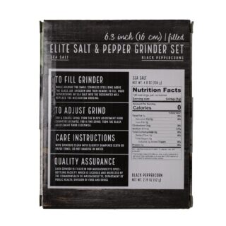 • The Kamenstein Elite Prefilled Salt and Pepper Grinder Set features a sleek, contemporary stainless steel and glass design to complement most kitchen decor. These grinders have a 2.63-inch diameter and are 6.3 inches high. So, they fit neatly on your countertops and cabinets. The salt and pepper grinder set have adjustable grind settings for fine to coarse salt and pepper. Both grinding mechanisms are made of ceramic for perfect results every time. To refill, easily unscrew the top of the respective salt grinder or pepper grinder. Wipe grinders clean with a slightly dampened cloth or paper towel.