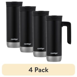 (4 pack) Contigo Huron 2.0 Stainless Steel Travel Mug with SNAPSEAL Lid and Handle in Black, 20 fl oz.