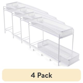 (4 pack) Mainstays 2-Tier Pull-Out Spice Organizer, White, 4.5″ x 11″
