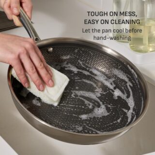 $53.71Add to cartT-fal Ceramic HybridMesh Stainless Steel cookware combines innovation and performance. The heavy-duty tri-ply construction ensures long-lasting durability and even heat distribution across all cooktops, including induction. The cast riveted handles provide a secure, comfortable grip. The cooking surface features a unique stainless steel pattern thats perfect for searing and is metal utensil safe, so you can cook with confidence and convenience. Oven safe up to 500F and handwash is recommended. Elevate your kitchen with our 3 quart saut pan with lid.
