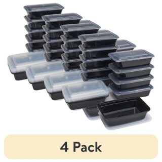 • Meal prep and storing leftovers are easy and convenient with versatile Mainstays Meal Prep Food Storage Containers. These handy plastic storage containers are the perfect solution when you’re preparing a healthy meal for the week ahead or storing restaurant and deli takeout in your fridge. From fresh salads and appetizer side dishes to main courses and desserts, this pack of food prep containers helps keep your food fresh and separated for when you’re ready to eat. They feature one spacious compartment perfect for packing leftover dishes and meals in one place. These plastic containers include a clear lid that makes it easy to view the contents of your content easily. The sturdy construction is made from reliably durable plastic that is strong enough to be placed in the microwave and dishwasher and can be reused several times. Beware of the heat after microwaving. For added convenience, these food storage containers are stackable to save space in your refrigerator or kitchen cupboard. The set includes 15 storage containers with a 4.2 cup capacity and 15 matching lids. When prepping or storing food, grab a practical Mainstays Meal Prep Food Storage Container to take any meal on the go. CAUTION: Do not use in ovens, broilers, or on stovetops. Do not microwave empty (no dry heating). Remove lid before microwaving. Container may soften when heated. Use care to avoid hot splashes and burns.