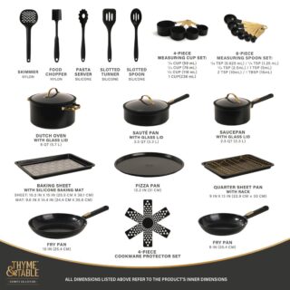 • Meet your new Signature kitchen tool, Thyme & Table 12-Piece Ceramic Non-Stick Ribbed Cookware Set – Black & Gold, elegantly designed in sleek grey. This set is the perfect blend of style and functionality, ensuring a top-notch cooking experience with every use. This set includes a generous 5.5-quart stock pot, a 2.5-quart saucepan, a 2-quart saut pan, a 10-inch fry pan, and an 8-inch fry pan, equipping you for any culinary challenge. Additionally, it comes with 4 cookware protectors to keep your investment in pristine condition for years to come.
