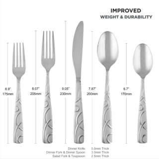 $31.29Add to cartThe Pepino Mirror 45-Piece 18/0 Stainless Steel Flatware Set is a Service for 8 that has a comfortable handle and evokes a contemporary yet classic feel in your hand with vibrant, modern design. They are suitable for everyday use or can be stored away for special occasions. Ideal for both indoor and outdoor use. Set includes (8) 5-piece settings and a 5-piece serving set for all of your entertaining needs!