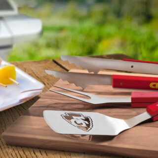 $49.79Add to cartGet your grill game on with an officially licensed set of barbecue tools. The barbecue tool set includes a Sportula, a pair of tongs and a grill fork. Each tool is made from heavy-duty stainless steel with brass-riveted team colored composite handles. Your team’s logo is stamped on the team colored composite handles and the team logo is laser cut through the blade of the Sportula. The Sportula and the fork both come with an integrated bottle opener. An unforgettable gift for any fan and the most noticed accessory at any tailgating event.
