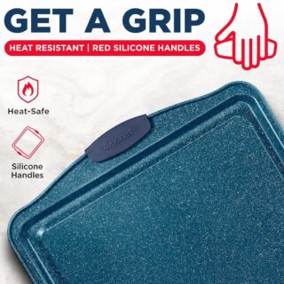• The BAKKEN 10-piece Nonstick Carbon Steel Bakeware Set is the perfect addition to any kitchen, whether for home cooks or professionals. This set includes one baking pan measuring 17.32” x 12.6” x 1.96”, one pizza pan measuring 14.56” x 12.99” x 0.78”, one small cookie pan measuring 15.15” 10.03” 0.60”, two round pans both measuring 10.24” x 9.60” x 1.60”, a square pan measuring 10.82 8.74 1.85, one loaf pan measuring 11.69 5.94 2.55, one big cookie pan measuring 17.1” x 11.8” x 0.67”, twelve cup muffin pan all measuring 16.22” x 10.43” x 1.18”, and twenty-four cup muffin pan all measuring 16.92” x 10.62” x 0.98”. These pans are ideal for everything from baking cookies and croissants to roasting vegetables, ensuring even heat distribution thanks to their commercial-grade carbon steel construction. The sturdy design prevents warping, even at high temperatures, making them perfect for everyday use. The nonstick blue coating not only ensures that your baked goods slide right off but also makes cleanup a breeze, helping you save time in the kitchen. These pans are oven-safe up to 450F, providing ample temperature resistance for a wide variety of recipes. In addition to their high performance, these pans feature a space-saving, stackable design that allows for easy storage, making them perfect for both home kitchens and professional settings. Safe for use in the oven, refrigerator, and freezer, and free from harmful chemicals .This bakeware set provides a reliable solution for all your baking needs, ensuring that every meal is prepared safely.