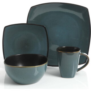 Gibson Home Soho Lounge Soft Square Dinnerware Set, 16pc,Teal Green