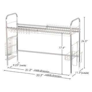 $48.97Add to cartThe NEX Single Layer Adjustable Stainless Steel Dish Rack is essential for a compact and beautiful kitchen. It can provide a stylish touch to your kitchen and provide many functions in very compact spaces. The Dish Rack is very durable and stable, with the ability to hold many kitchen utensils at once and provide a quick dry to keep out unnecessary bacteria from the kitchen. Customers can just the height and the length of the dish rack which will allow them to choose measurements to suit their sink. Being adjustable is excellent because it allows the sink to adjust based on your sink dimensions. The Dish Rack can give families a spacious and hygienic environment to store their daily kitchenware. The 304 Stainless Steel Frames are stable and durable and are created to hold up to 50lbs. The 4 rubber-covered legs not only help keep the rack stable but also protects countertops and sinks. The 6 moveable S-Hooks allow for customization and can hook kitchenware such as spatulas, spoons, etc. The draining tray is designed with a beautiful polish that will help repel water, keeping dishes dry! Double grooves on shelves help ensure there is no movement and slippage between plates and dishes. Organization is an important factor to help keep the kitchen clean and tidy. With the NEX Dish Rack, we can provide the efficient organization of dishes, utensils, pots, cups, and other utensils.