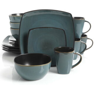 • If you are looking to bring a modern feel to your home, this set is an excellent choice. A contemporary square shape and a stunning two-tone color design elevate any occasion and create a beautiful platform to show off your delicious meals. The Gibson Home Soho Lounge collection is available in many colors making it easy to find the right set to go with any table setting. All Soho Lounge items are made of durable stoneware that is both dishwasher and microwave safe. Bring the style and value of Gibson to your home today!