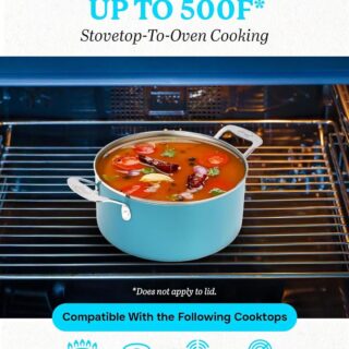 $63.03Add to cartThe Gotham Steel Nonstick Ceramic Pots and Pans 12 Piece Kitchen Cookware Set in stunning aqua blue with gray-tone interior combines modern aesthetics with high functionality. This premium set is built with a triple-coated nonstick surface that ensures hassle-free food release and easy cleaning. Celebrated globally, Gotham Steel has revolutionized modern kitchens with its advanced nonstick ceramic and titanium technology! Each piece in this set has been upgraded for enhanced nonstick properties, durability, and even heat distribution, including the integration of diamonds to prevent scratching. Toxin-free and dishwasher-safe, this cookware is perfect for health-conscious cooking. Suitable for all stovetops and ovens up to 500F, it includes frying pans, skillets, saucepans, a stockpot, and more. Transform your cooking experience with this stylish, efficient cookware set.