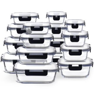 • Upgrade your kitchen organization with these premium glass food storage containers with lidsdesigned for durability, convenience, and everyday use. Crafted from high-quality borosilicate glass, these reusable glass containers with lids are built to handle it all. From meal prep to leftovers. Each Glass storage containers with locking lids features a leakproof, airtight lid that keeps food fresh and secure, whether you’re storing in the fridge, freezer, or packing lunch on the go. This stackable glass Tupperware sets with lids saves space while giving your pantry or fridge a clean, modern look. Microwave- and oven-safe (up to 550F), these glass containers make it easy to reheat meals without transferring dishes. Ideal for anyone seeking a reliable, multi-use kitchen storage containers solution thats functional, sustainable, and built to last.