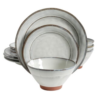 $46.14Add to cartAdd a statement piece to your tabletop with the Gibson Elite Terranea 12 Piece Stoneware Dinnerware Set in White. This beautiful hand-painted collection has artisanal appeal that is perfect for everyday use and special occasions. With complete service for 4, your meal will surely impress your guests displayed on this set. Perfect for everyday use, formal dinners, casual meals