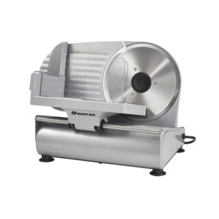 • Slicing your favorite foods just got easier thanks to the Mossy Oak 7.5 inch Electric Meat Slicer, model 61-0770-MO. It has a large serrated blade to efficiently slice a variety of foods including frozen, thawed and cooked meats, cheeses, breads, vegetables and fruits. The adjustable thickness dial makes it easy adjust the slicing thickness from deli thin to more than 1/2″ (1.3 cm). Make thick perfectly-sliced onion rings and slice fruits like pineapple for grilling or cut thin slices of chicken or beef for Philly cheesesteaks or thin, even slices of meat for drying, smoking or jerky. The powerful 150 watt motor ensures fast, consistent slicing, and the larger food pusher accommodates wider foods like ham, wheels of cheese and bread loaves. The smooth-gliding carriage with durable stainless steel food tray makes slicing meats and other foods easy. The suction feet help to hold the sturdy base in place while slicing. The blade, food carriage, slide-rod extension and food pusher are easy to remove for cleaning. Tilting action makes it easier to remove the blade, and the food pusher is top-rack dishwasher safe. The meat slicer is ideal for hunters, farmers, small retail butchers and anyone who buys food in bulk.