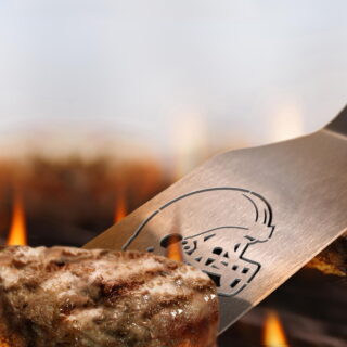 • Get your grill game on with an officially licensed set of barbecue tools. The barbecue tool set includes a Sportula, a pair of tongs and a grill fork. Each tool is made from heavy-duty stainless steel with brass-riveted hard maple handles. The logo is stamped on the hard maple handles and the logo is laser cut through the blade of the Sportula. The Sportula and the fork both come with an integrated bottle opener. An unforgettable gift for any fan and the most noticed accessory at any tailgating event.