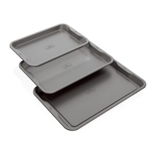 • Introducing the Ninja NeverStick 3-Piece Baking Sheet Set, the essential bakeware that easily releases food and wipes clean. Heavy duty 0.6mm aluminized steel minimizes rusting, resists warping, and is oven safe up to 500F. The NeverStick coating easily wipes clean, is dishwasher safe, and delivers perfect results every time.