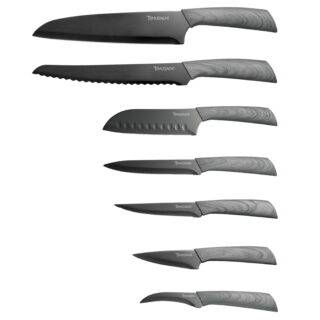 $31.94Add to cartDark and seriously dapper, the Raintree Ash 13 Piece Cutlery Block Set by Tomodachi will bring the sense of adventure and boldness necessary for cooking creatively! Fun, refined design with a twist, the handsome Raintree Ash set is a juxtaposition of material treatments and visual appeal. Sleek sophistication meets edgy and earthy, its gunmetal titanium coated non-stick blades provide superior sharpness while its grey ash wood-style soft grip handles provide comfort.
