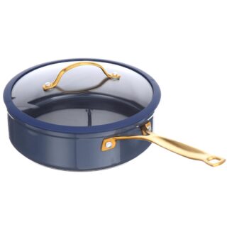 • Bring glamour and performance to your kitchen with the Paris Hilton 4.6 Quart Dutch Oven, crafted for chic, versatile cooking. Featuring a blue finish, heavy gauge cast aluminum body, and Clean Ceramic nonstick coating, this Dutch oven is built for superior heat distribution, easy food release, and effortless cleanup. Perfect for everything from slow-simmered stews to hearty roasts, this Dutch oven is designed to handle all your favorite recipes with ease. The Dutch oven is oven safe up to 400F for up to 30 minutes and the lid is also oven safe up to 350F for up to 30 minutes. Both the lid and pot are also dishwasher safe for added convenience. The tempered glass lid with vent allows you to monitor your cooking without losing heat, and the cast side handles provide a sturdy grip when transferring from stovetop to oven to table. Safe for gas, electric, and glass cooktops (not compatible with induction). For best results, hand wash is recommended, though its also safe for the dishwasher. Always allow cookware to cool before cleaning to preserve its beautiful finish. Cook, serve, and slay every meal with the Paris Hilton Dutch Ovenbecause in Paris’ world, every dish deserves to be iconic. And dont forget to post your creations with #BeAnIcon for a chance to be featured on Paris’ social media!