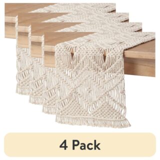 (4 pack) Better Homes & Gardens Macrame 90″x14″ Machine Washable Natural 100% Cotton Table Runner